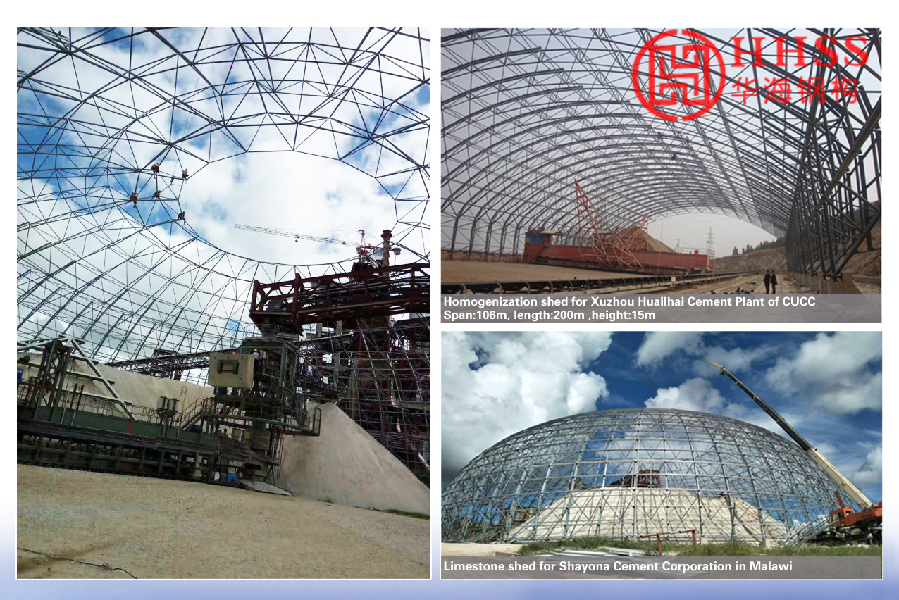 鋼網架結構問世以來,以其高效的受力性能、新穎美觀的形式和快速方便的施工受到人們的歡迎。在需要大跨度、大空間的體育場館、會展中心、文化設施、交通樞紐乃至工業廠房,無不見到空間結構的蹤影。可用作體育館、 影劇院、展覽廳、候車廳、體育場看臺雨篷、飛機庫、雙向大柱鋼網架結構距車間等建筑的屋蓋。干煤棚、儲料棚、堆料廠、均料庫、輔料庫、熟料庫等工業廠房應用。