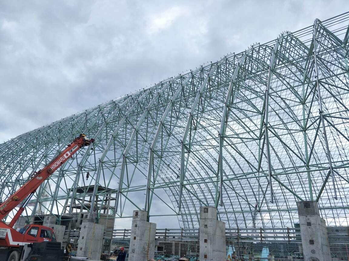 球形網架結構比較合適大跨距屋蓋,應是它具備室內空間支承、彎曲剛度大、節約不銹鋼板材、抗振性能好、建筑密度較小、造型設計美觀大方等特性。現階段,現有大中型體育場館、展廳、電影院、廠房、庫房等工程建筑的屋蓋選用球形網架結構,其普遍的運用市場前景促進愈來愈多大家剛開始關心應用球形網架結構。