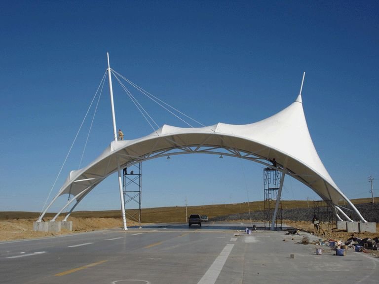 在城市的入口處,設計擁有自己城市鮮明特色和文化韻味的建筑形式乃是每個城市發展的首選之作,而張拉膜以自己多變的特性,柔美的造型以及夜晚配合彩燈的照射所顯示出特有的柔和的氛圍更讓過往著記憶深刻,同時極具現代感張拉膜又展現了一個城市的發展理念和思路。