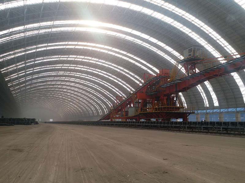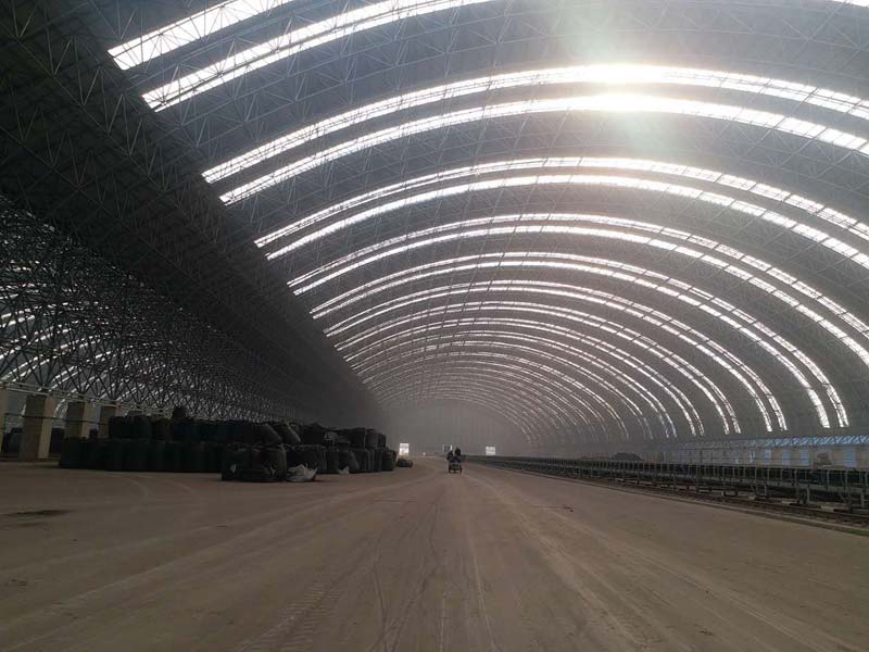 Jiangsu Huahai Steel Structure Co., Ltd. undertook to build the shed transformation of Fengnan Mixing Material Yard. The shed uses a bolted ball grid structure with an arc-shaped appearance, which shows the advantages of a large span of the grid structure and beautiful appearance.